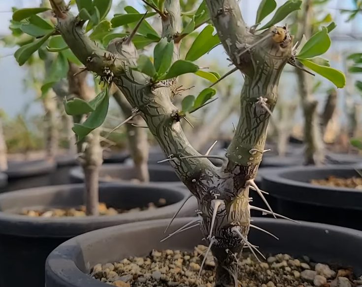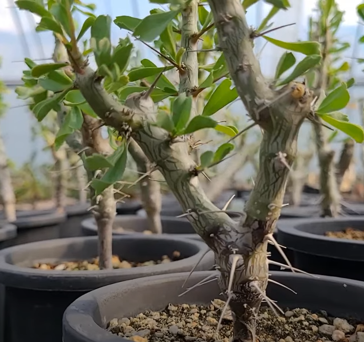 Spines: Thick and straight, 2-5 blunt stalks in axils of spines.